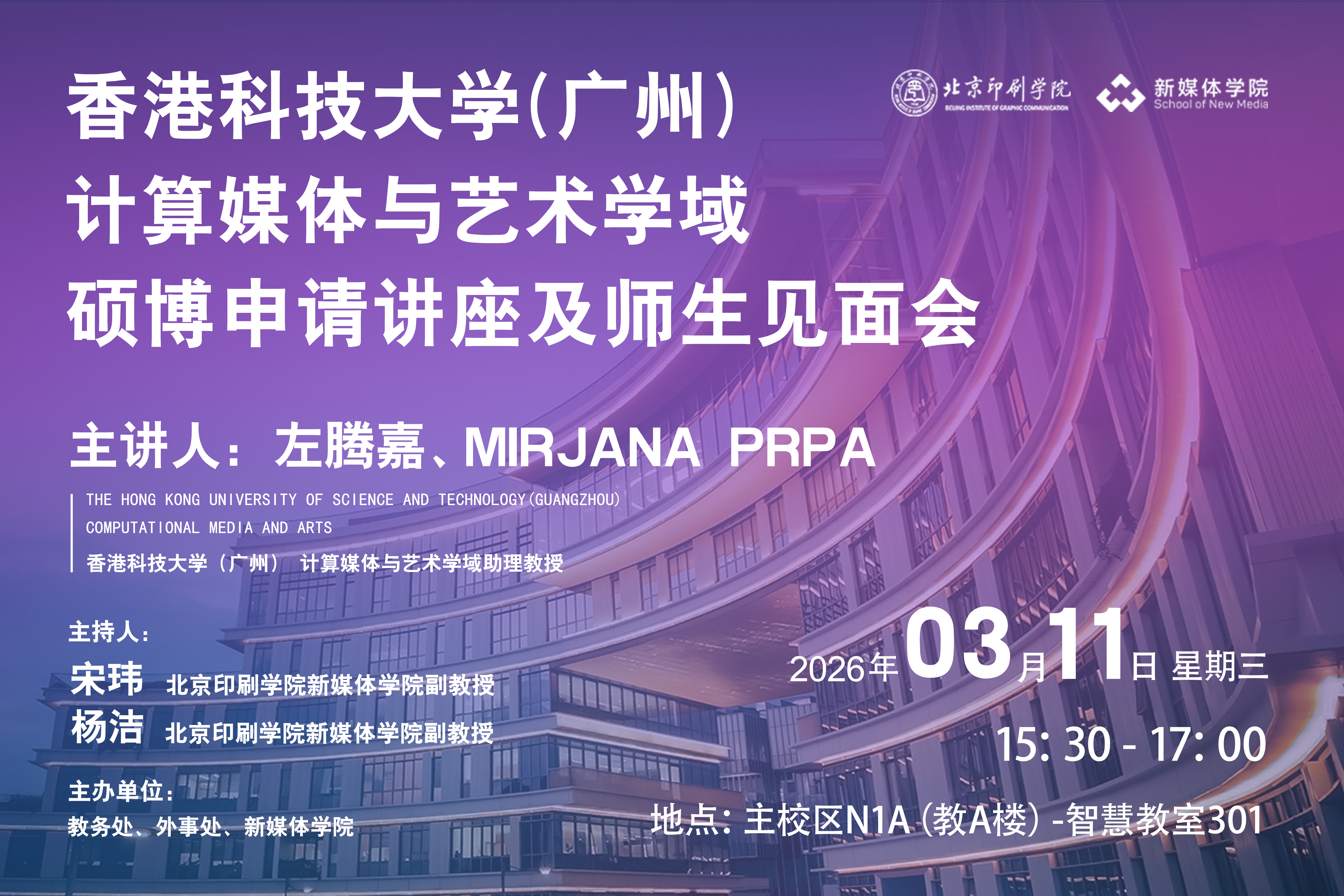 香港科技大學(廣州)計算媒體與藝術學域碩博申請講座及師生見面會